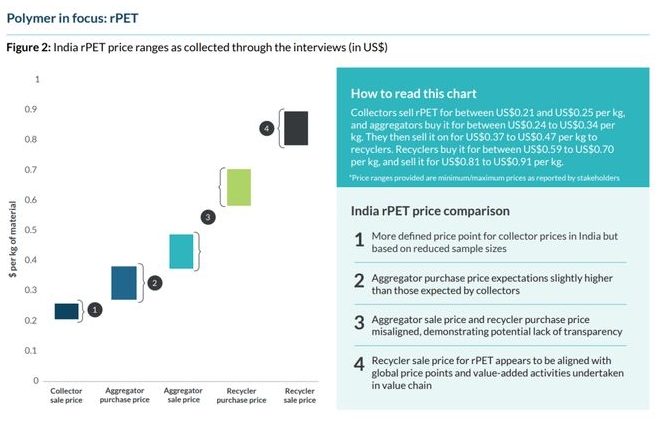 印度、東南亞的廢塑料原料和再生塑料價(jià)格缺乏透明度,導(dǎo)致需求和供應(yīng)波動(dòng),再生設(shè)施產(chǎn)能利用率低,最終對(duì)品牌商履行其塑料包裝中再生材料承諾構(gòu)成挑戰(zhàn)。 價(jià)格數(shù)據(jù)至關(guān)重要,在缺乏數(shù)據(jù)的情況下,品牌商和其他再生塑料買(mǎi)家設(shè)定的目標(biāo)將脫離市場(chǎng)。